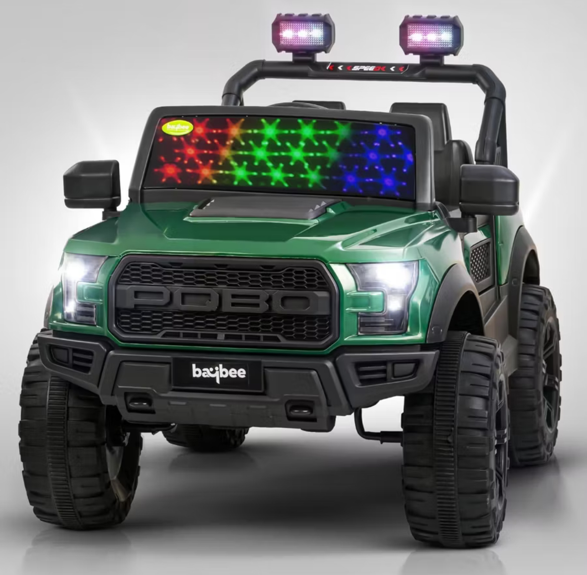 - [Safety First with Slow Start Mechanism]: Equipped with a powerful 4*4 motor engine, this jeep for kids features a slow start mechanism to ensure safe acceleration. The bright LED headlights on both the front and rear offer enhanced visibility during nighttime driving. The design of the steering wheel minimizes risks, allowing slight adjustments for safe, controlled turns.